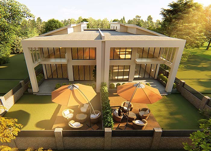 Villa de lujo duplex prefabricada con marco de acero ligero o sistema panelizado