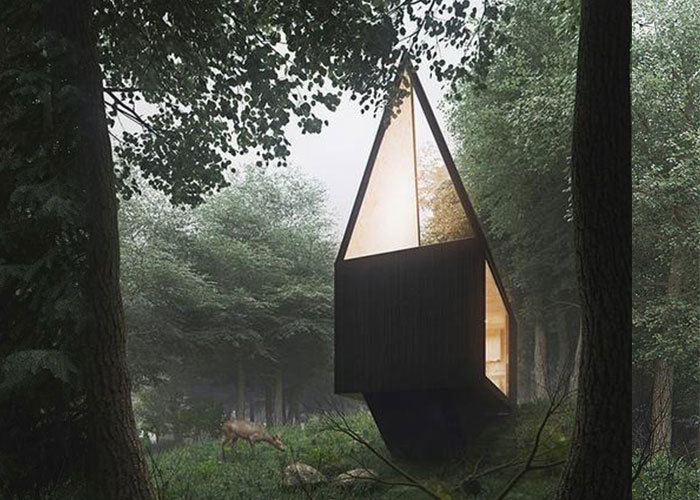 Moonglow Cabin offers a layout designed for adaptability across different settings. With a footprint of 3 by 7 meters, the structure makes use of vertical space to separate living and resting areas.